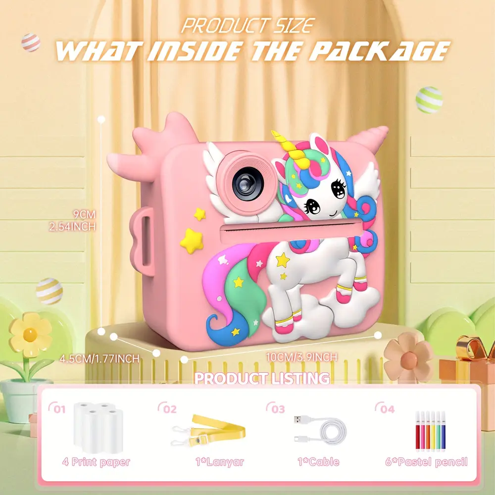 Appareil photo instantané enfant HD 1080P – caméra amusante avec impression intégrée