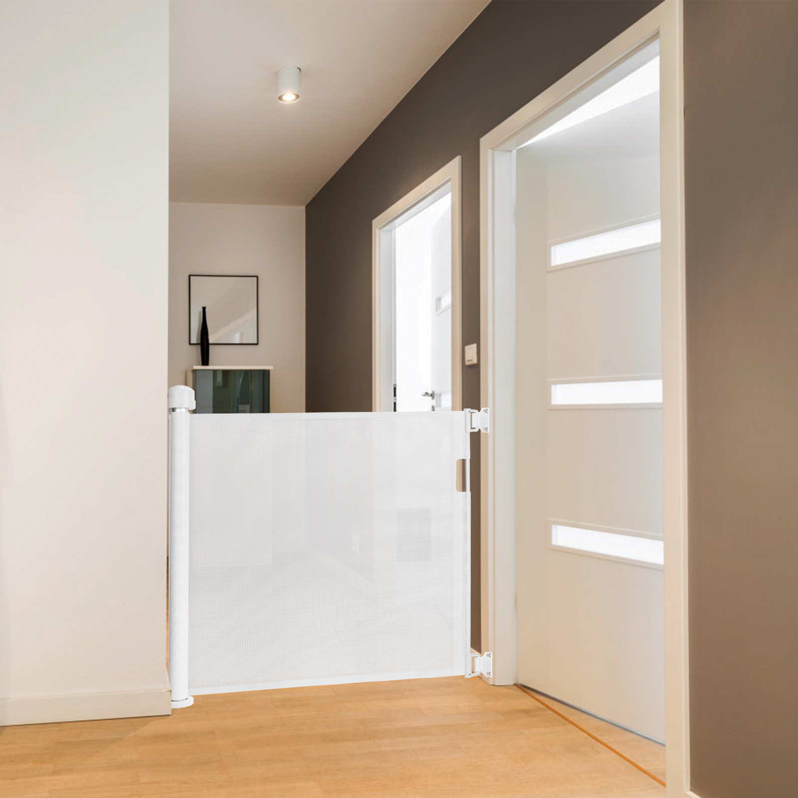 Barrière escalier rétractable en aluminium et PVC – sécurité enfant intérieur/extérieur