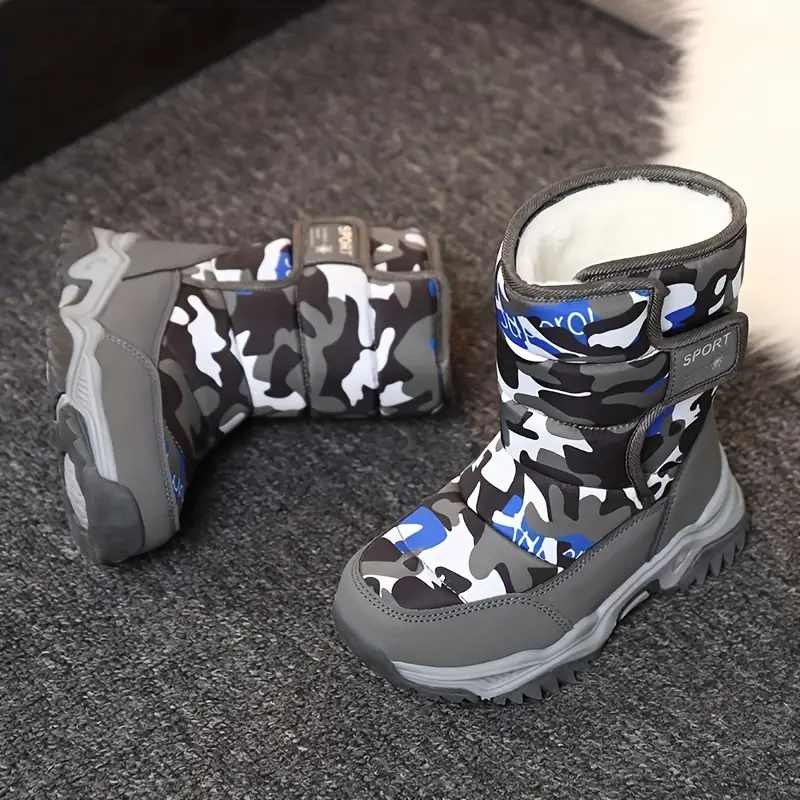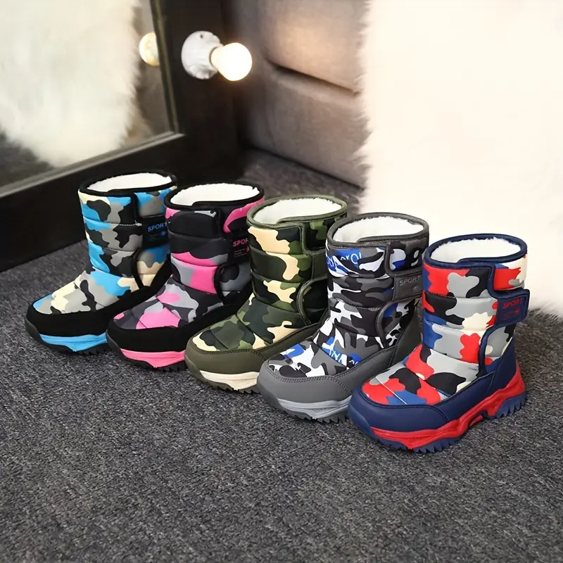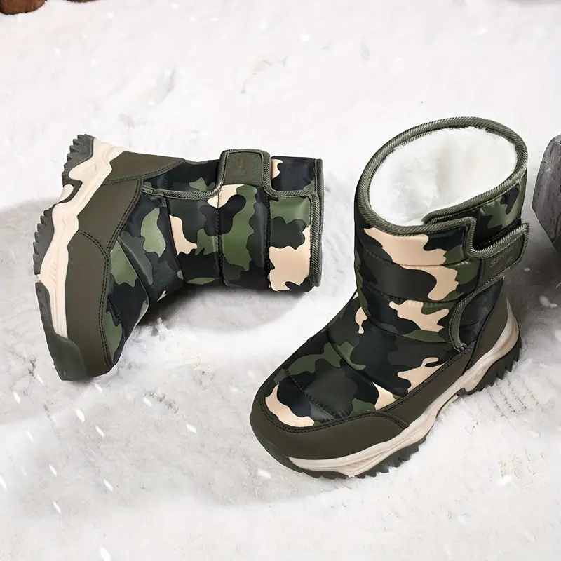 Bottes de neige enfant imperméables doublées chaud – camouflage hiver unisexe