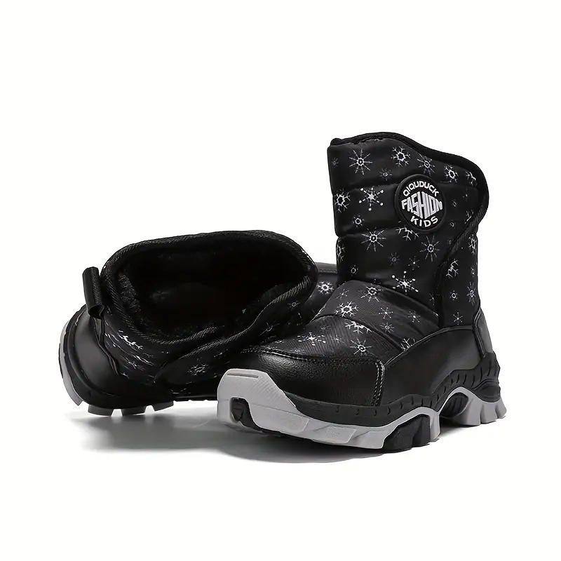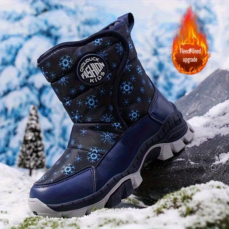 Bottes de neige garçon doublées polaire motif étoile – hiver chaud et antidérapant