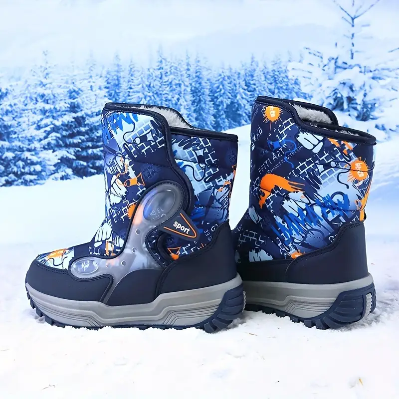 Bottes de neige enfant imperméables à motifs – doublées chaud pour l’hiver