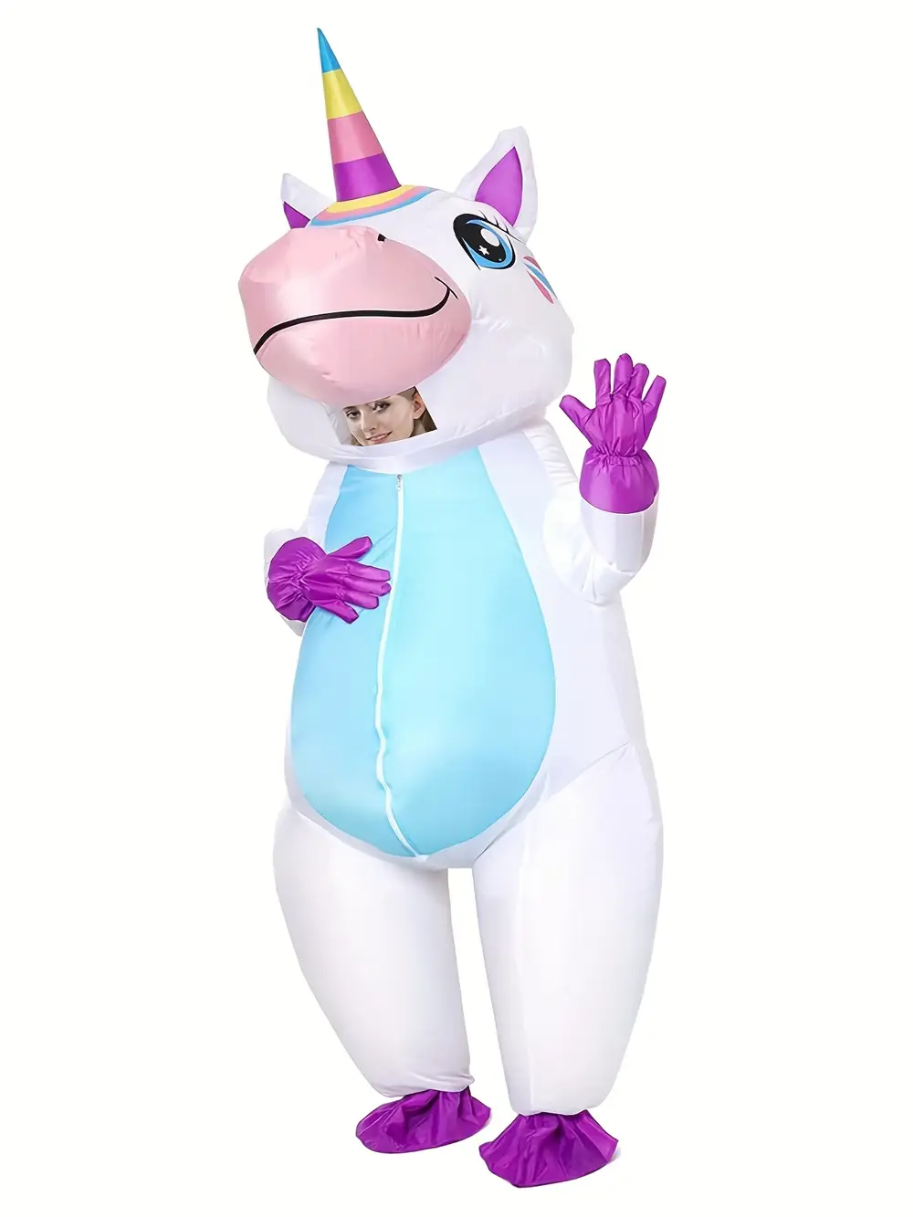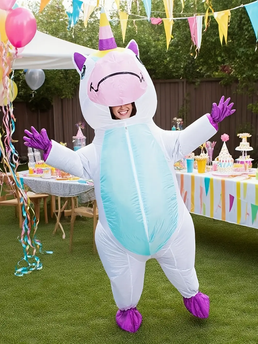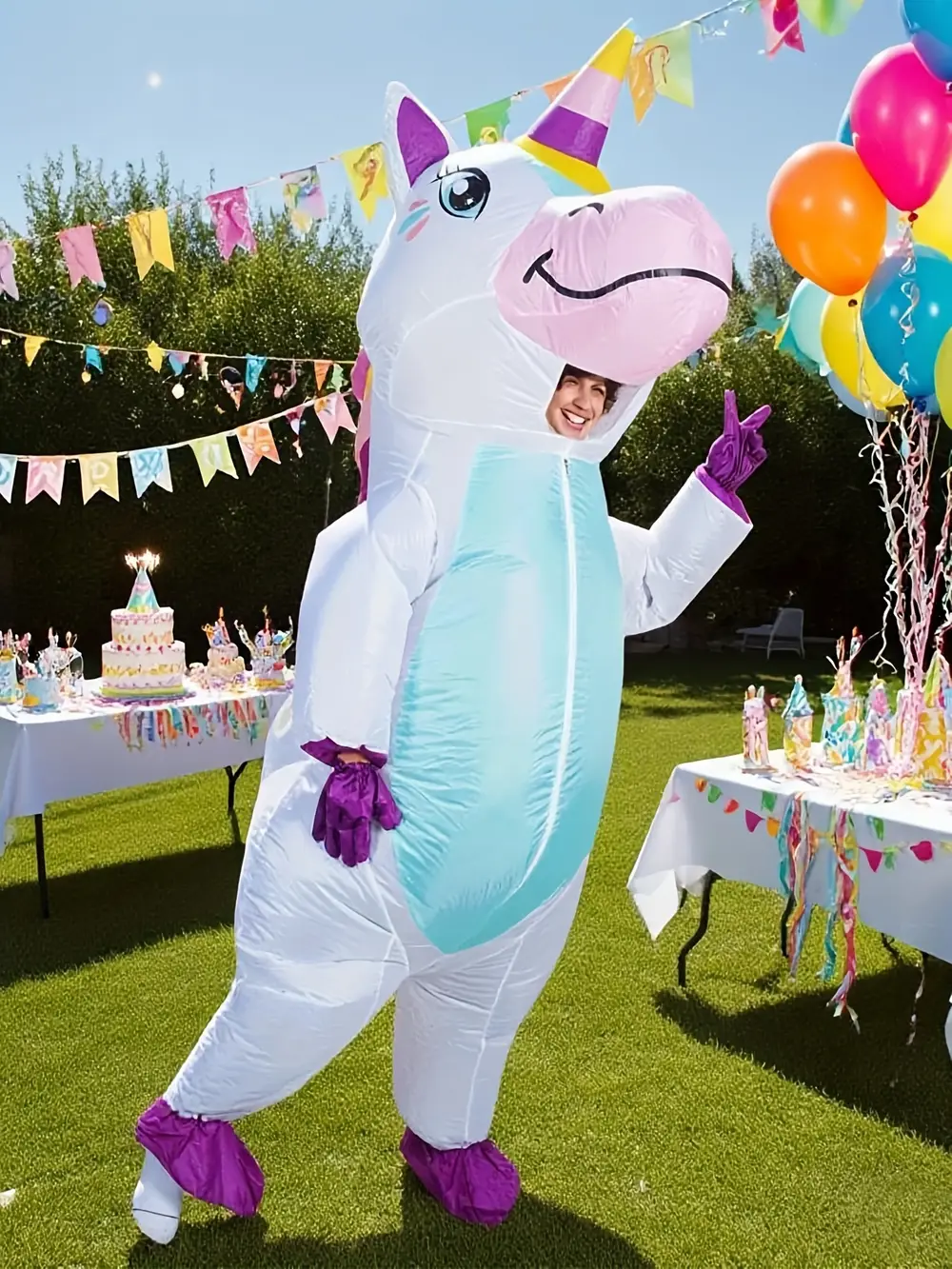 • Déguisement licorne gonflable adulte avec finitions soignées et design réaliste