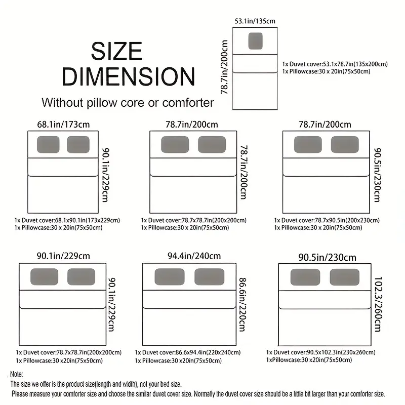 • Composé de 1 housse de couette avec fermeture éclair et 2 taies d’oreiller assorties (version 3 pièces)