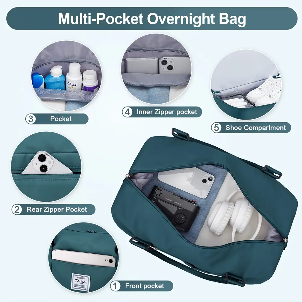 Sac de voyage femme polyvalent en nylon avec compartiments séparés et porte-chaussures