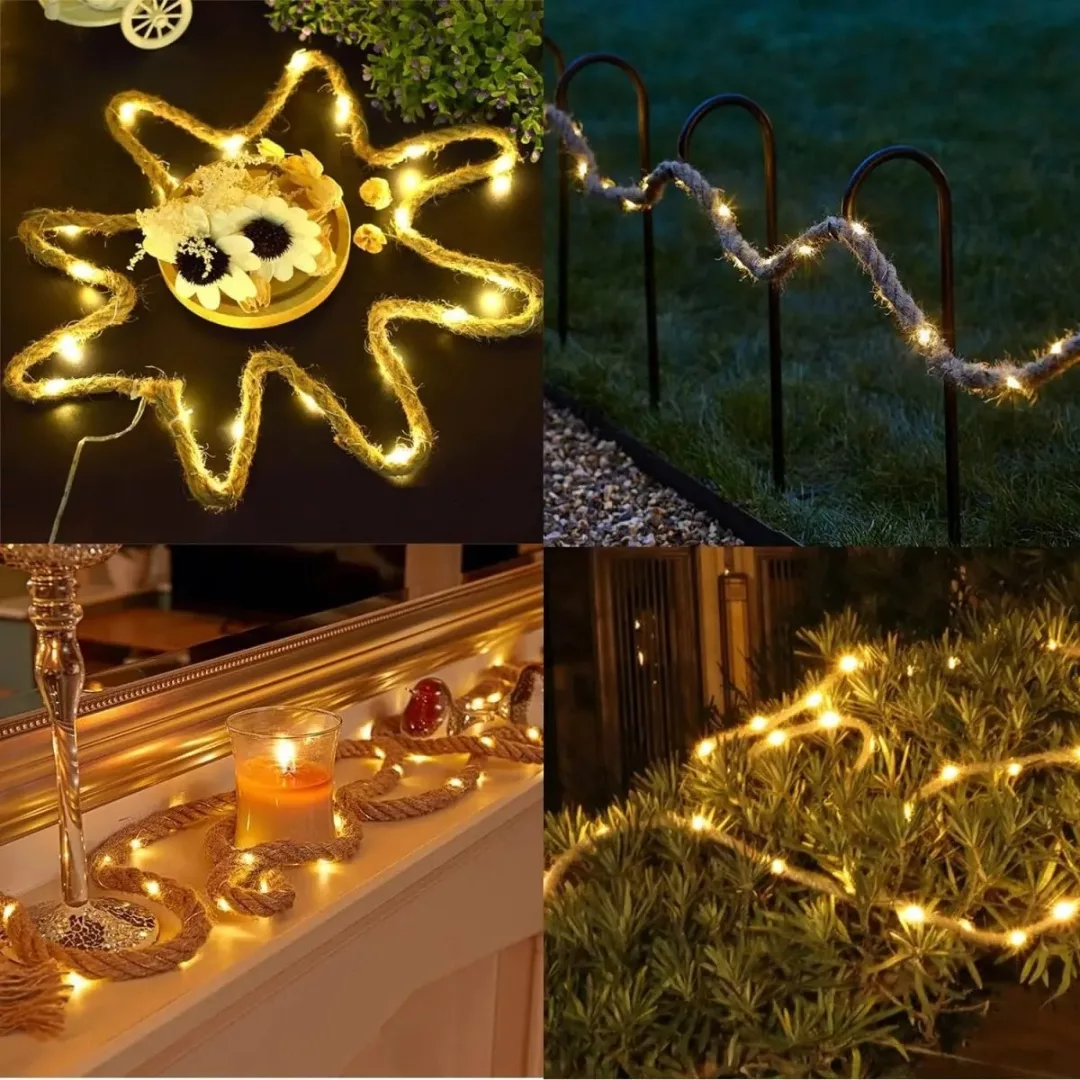La Guirlande Solaire Extérieure en Fibres Naturelles offre une ambiance lumineuse unique, alliant l’esthétique naturelle des fibres à la technologie écologique du solaire.