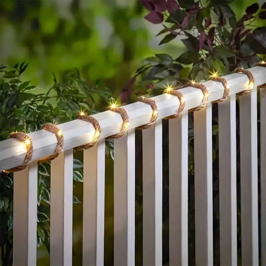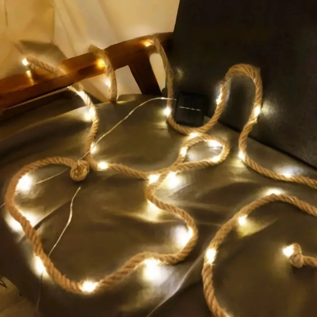 Guirlande Solaire Extérieure en Fibres Naturelles – Une Fusion entre Nature et Technologie