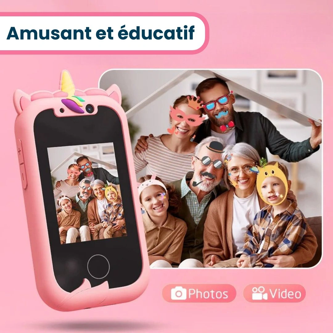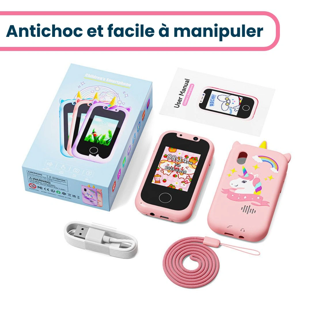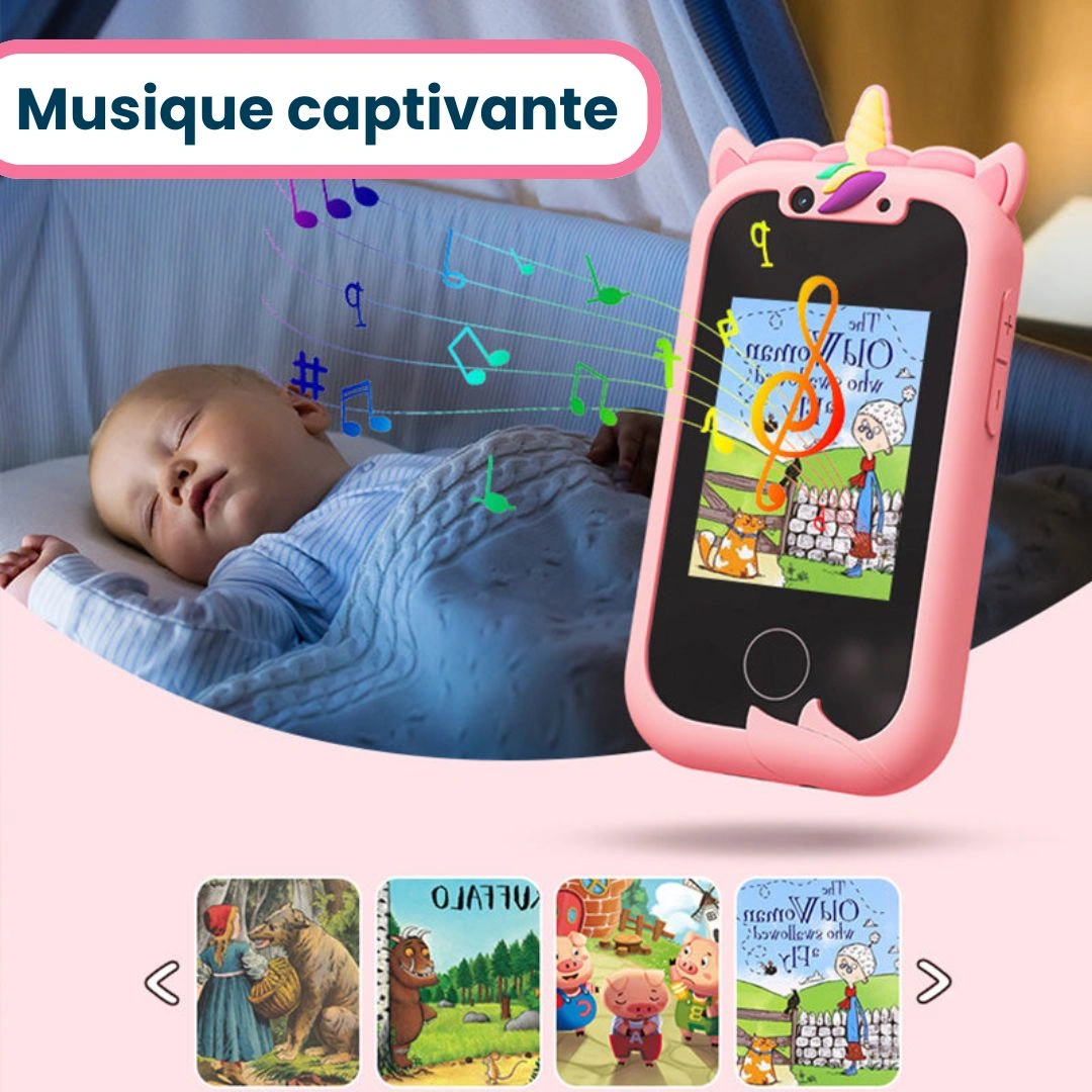 • Design réaliste, inspiré des smartphones actuels pour imiter les parents tout en apprenant.