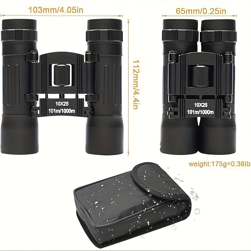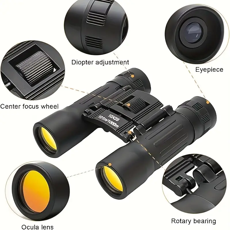 Jumelles compactes 10×25 pliables – idéales voyage, randonnée, concert, nature