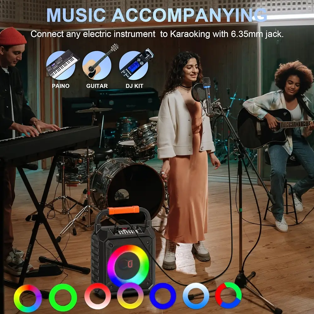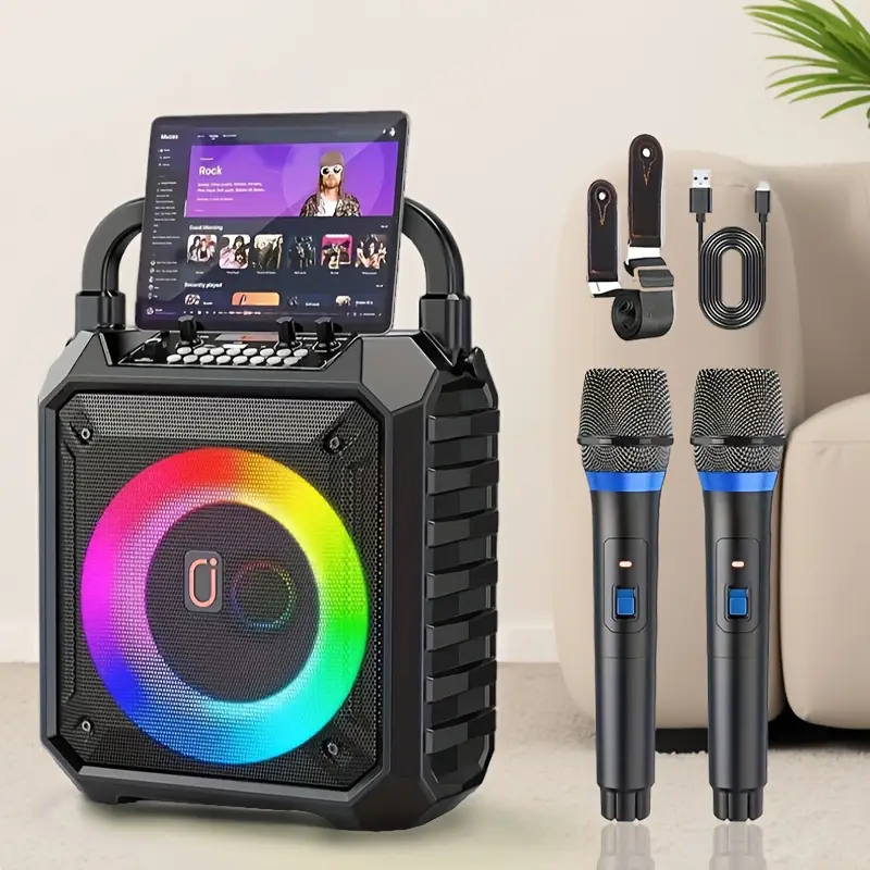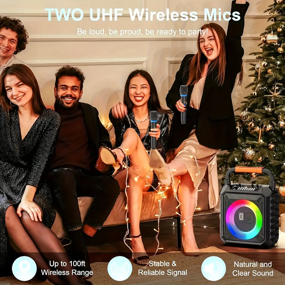 Enceinte Bluetooth avec 2 micros sans fil – Karaoké portable à lumières LED