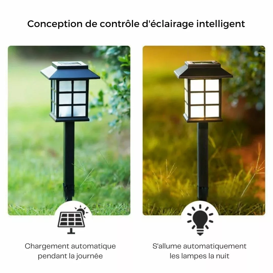 Lampe solaire à planter pour allée jardin – Éclairage extérieur automatique et écologique – Ambiance chaleureuse sans fil