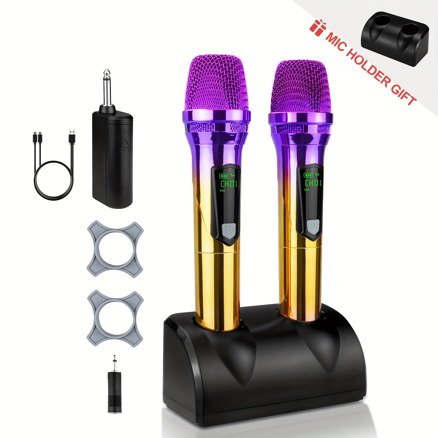 Microphones sans fil avec base rechargeable – duo dynamique compatible 3,5 mm & 6,35 mm