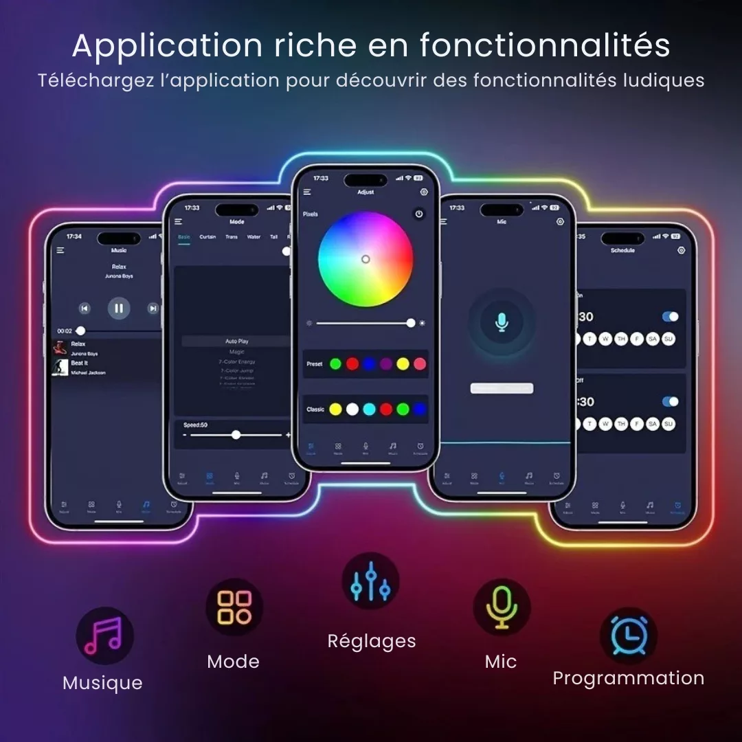 Néon lumineux mural rechargeable sans fil – Ambiance unique instantanée, installation facile sans perçage – Idéal déco moderne