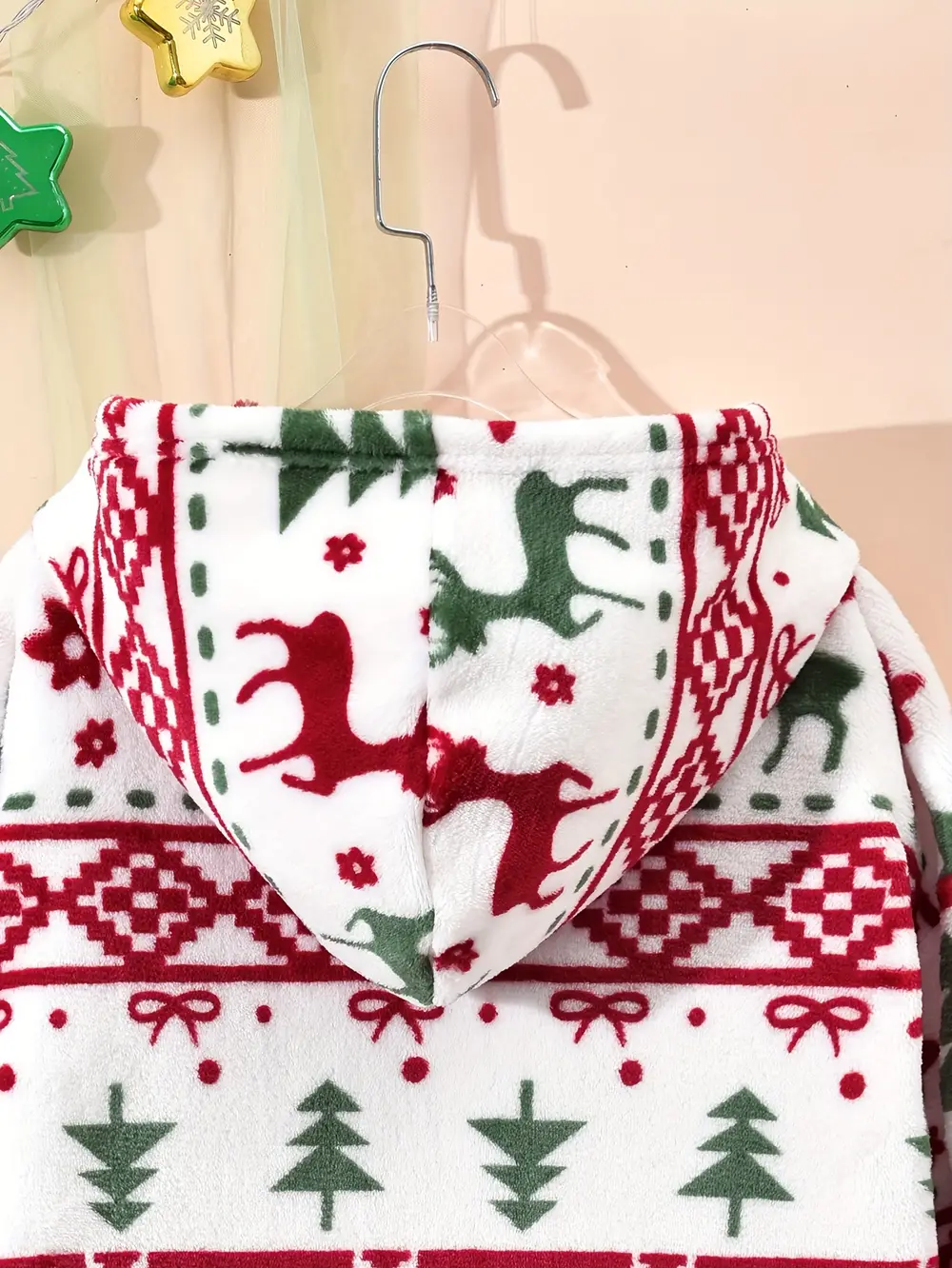 Cardigan de Noël enfant à capuche – maille douce motif renne festif