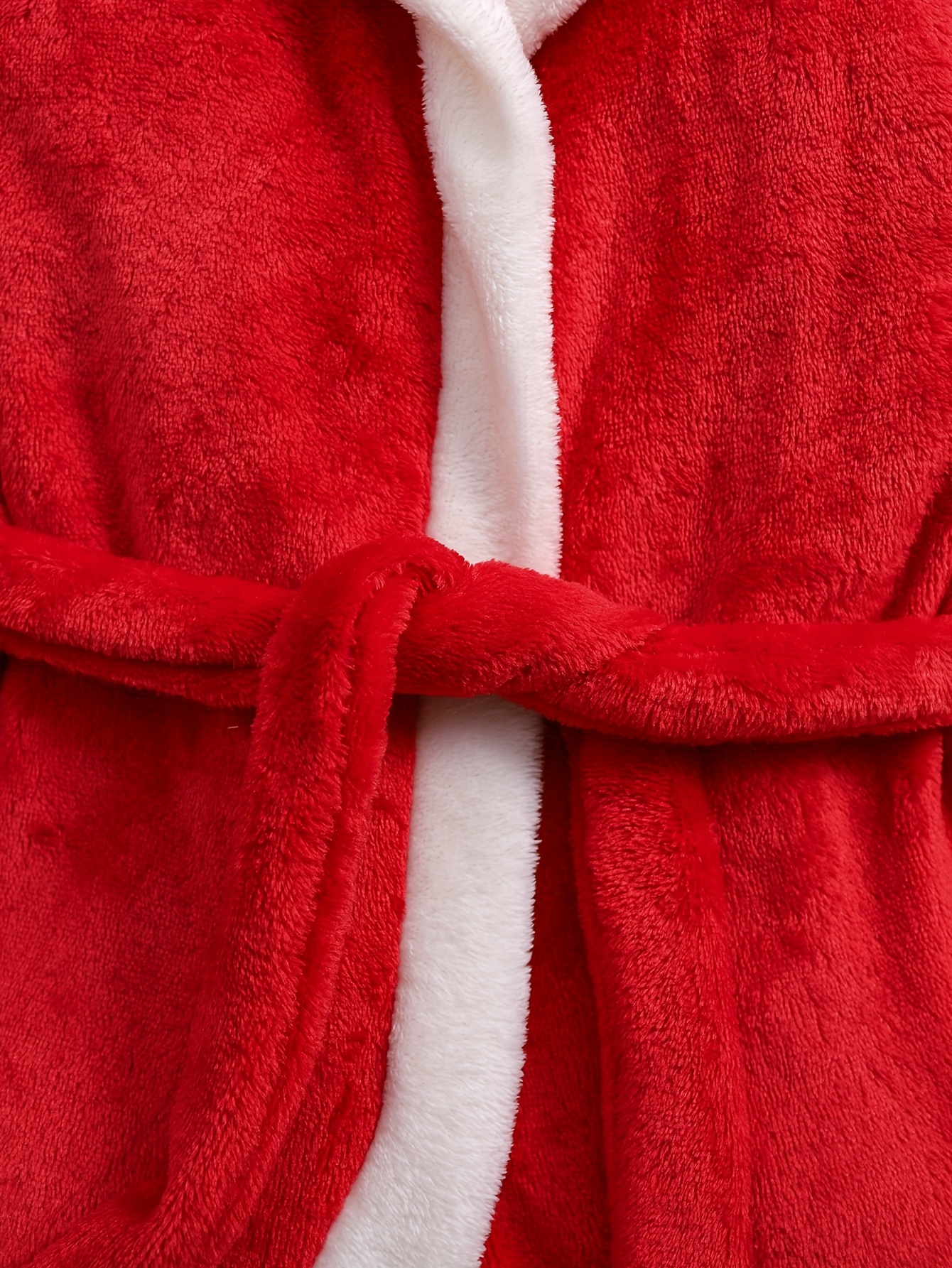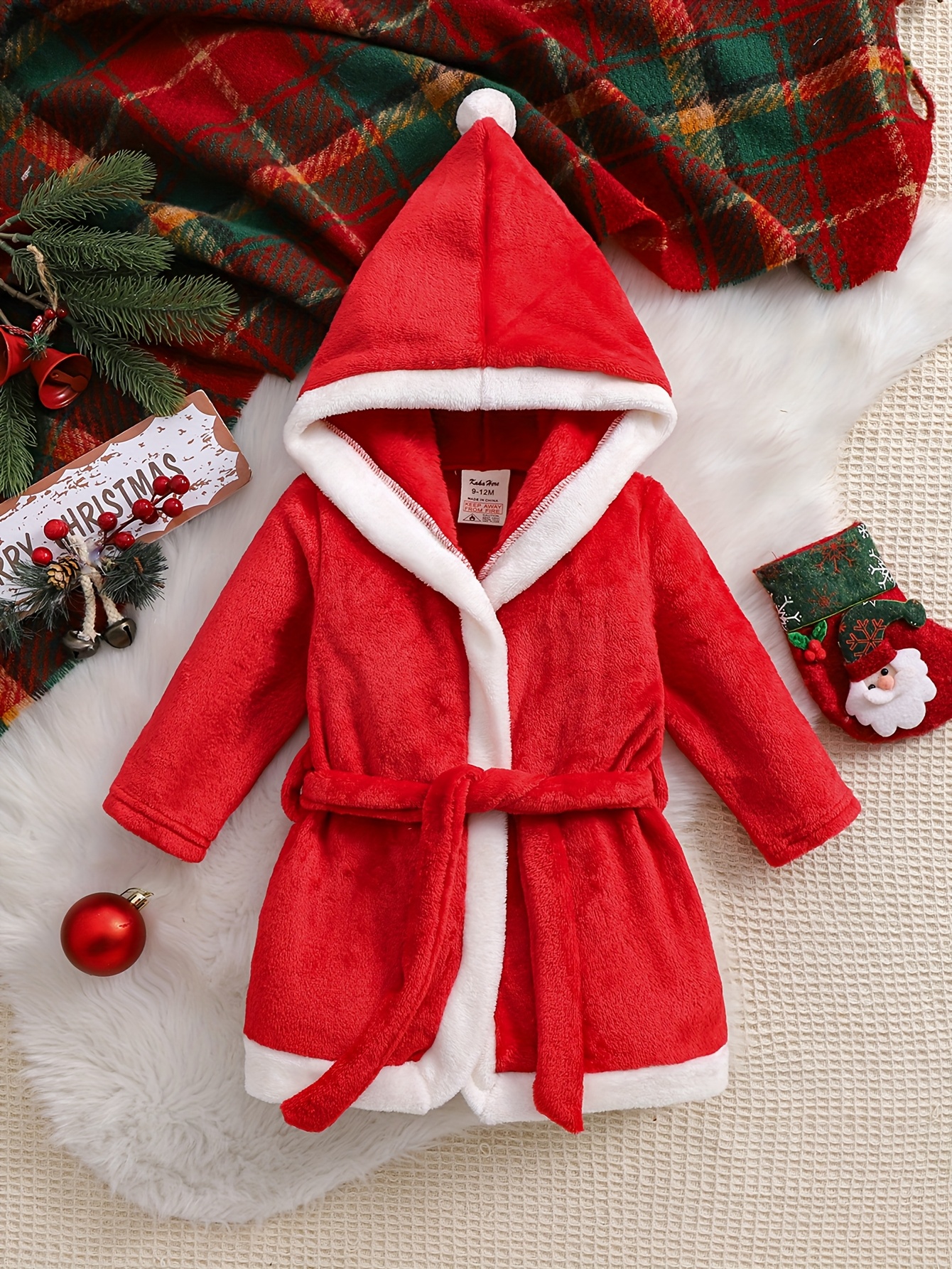 Peignoir enfant en polaire douce avec capuche et bordure blanche – style Noël