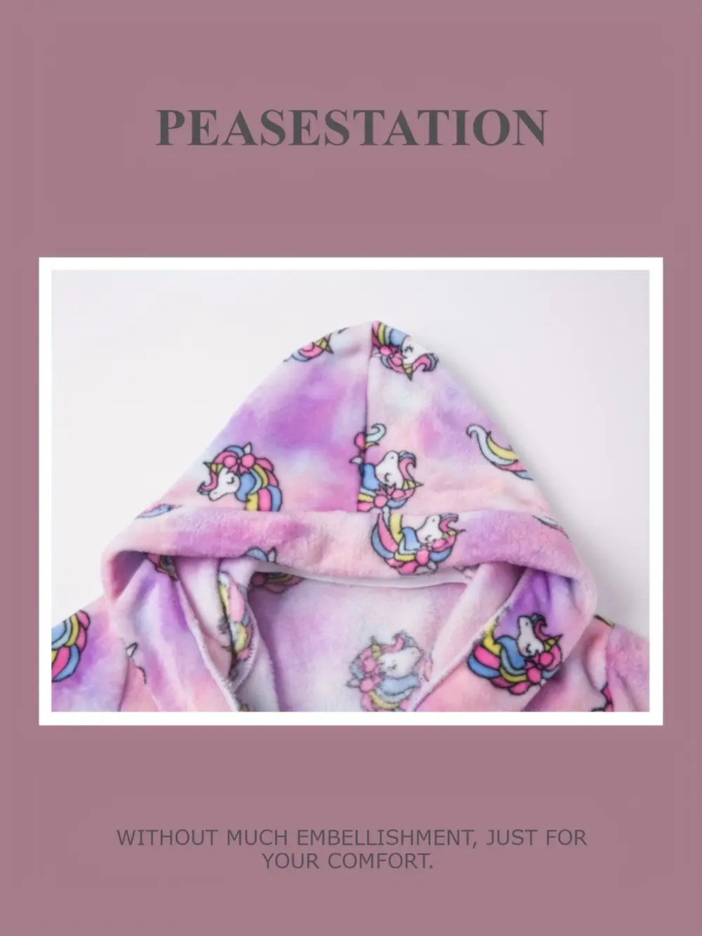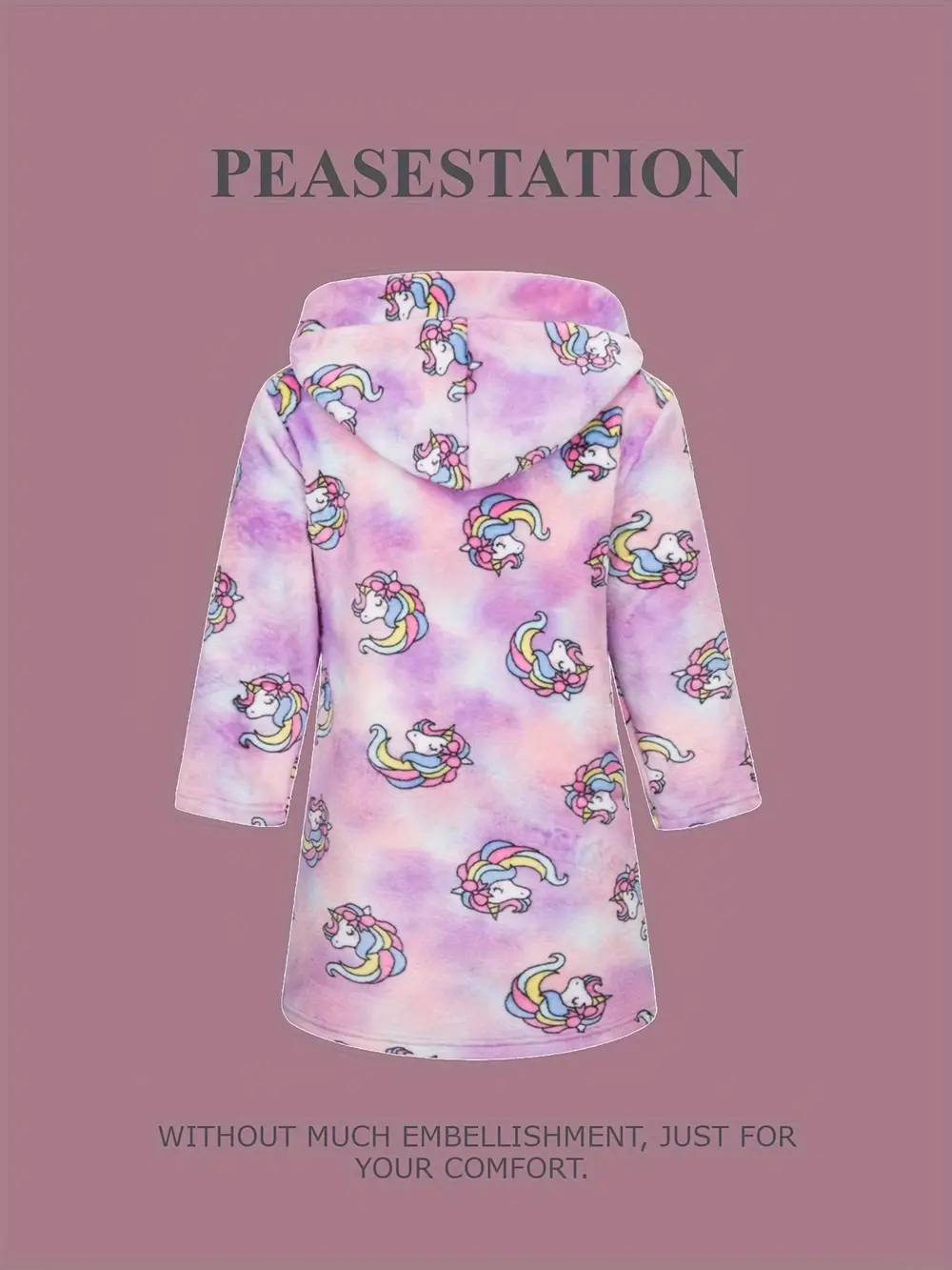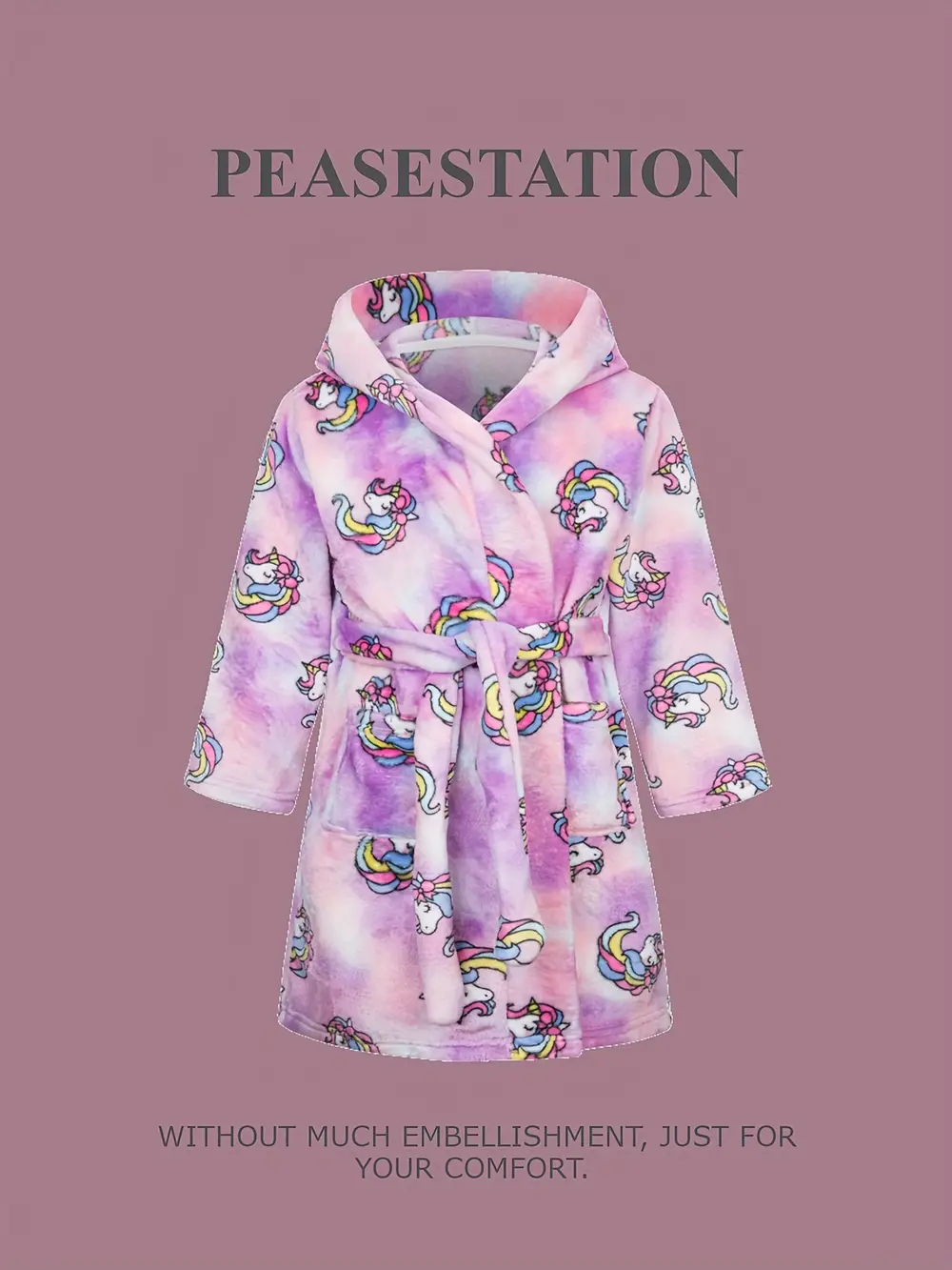 Peignoir enfant en flanelle douce à capuche – motif dessin animé fille