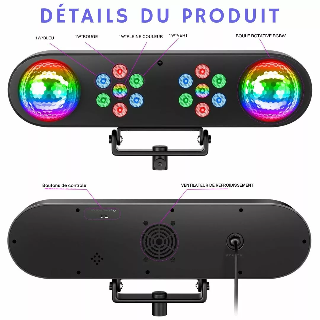 • Crée une ambiance disco captivante grâce à son effet lumineux rotatif et multicolore.