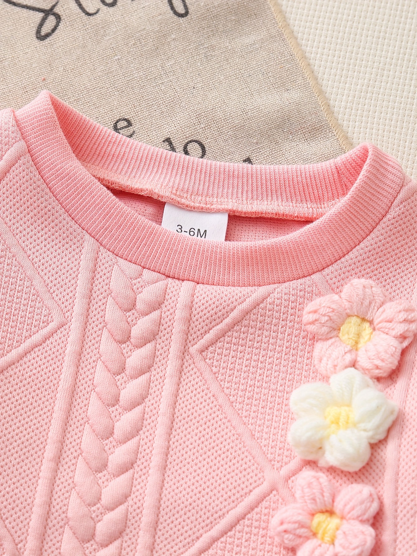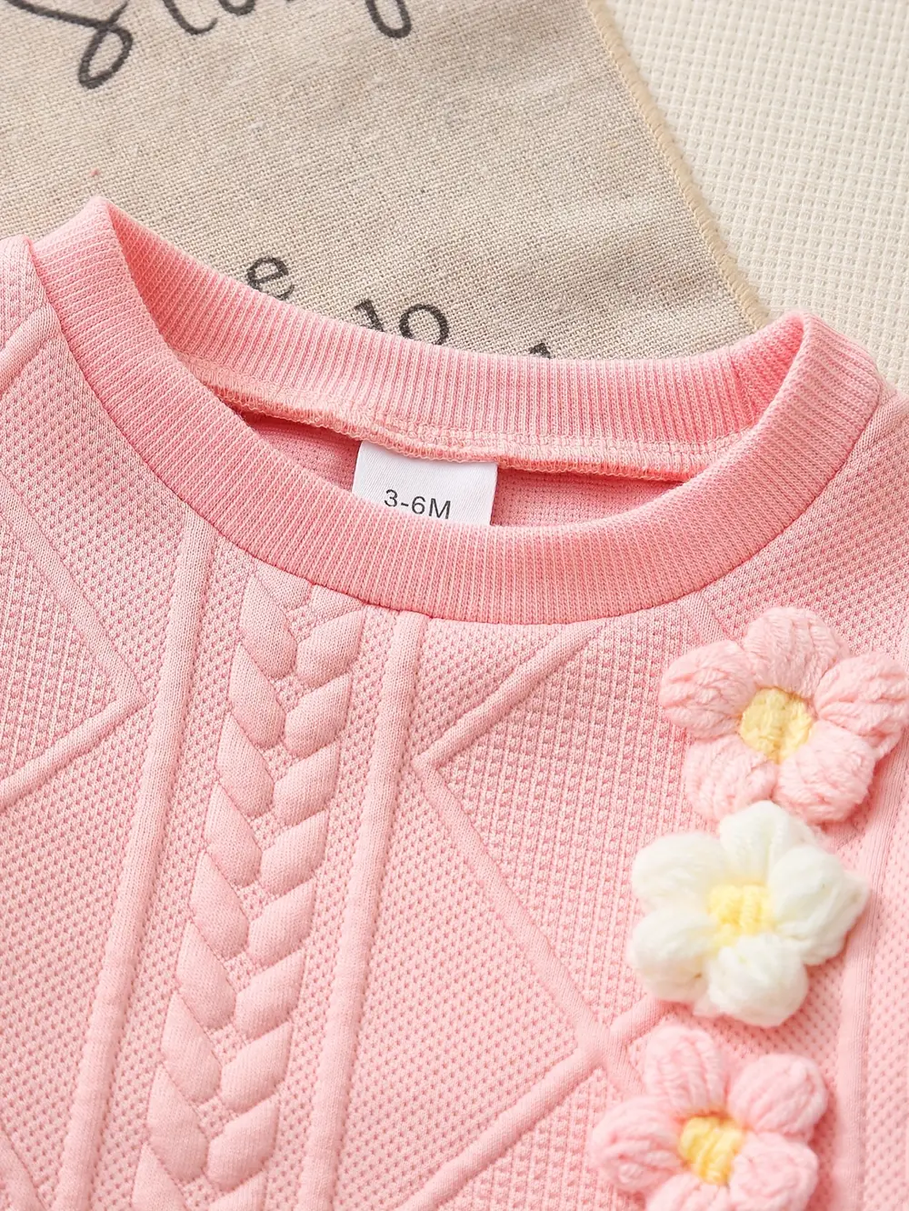Ensemble naissance bébé fille 2 pièces – haut fleuri à pompons et pantalon doux