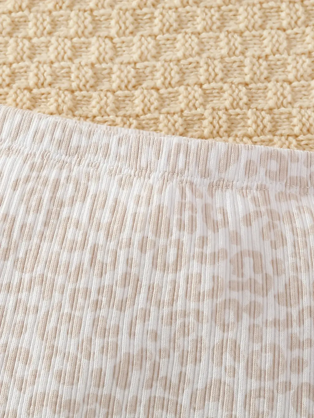 • Comprend un haut à manches longues, un pantalon avec jambières et un bonnet floral assorti.