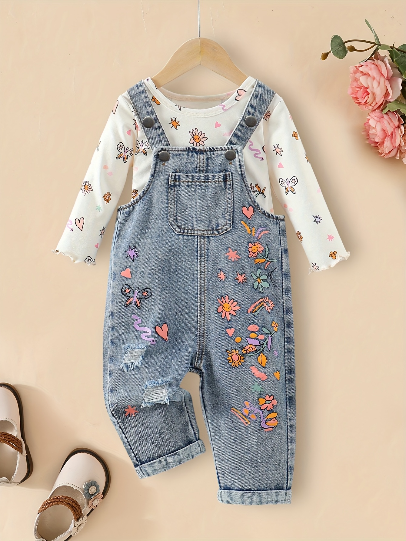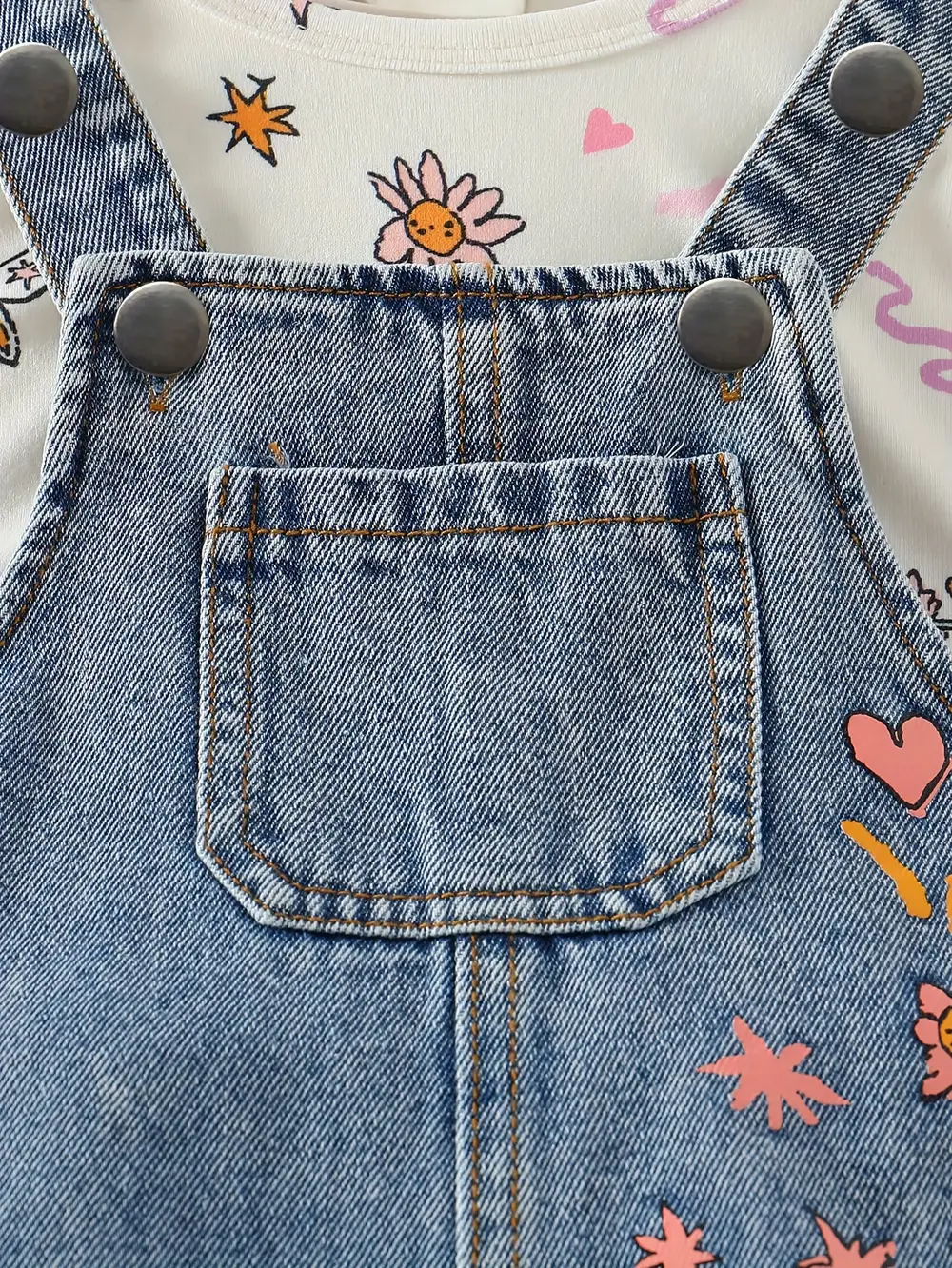 Ensemble bébé fille 2 pièces – haut floral manches longues et salopette en jean