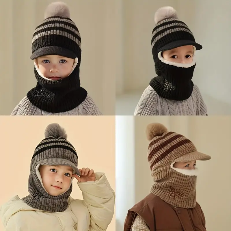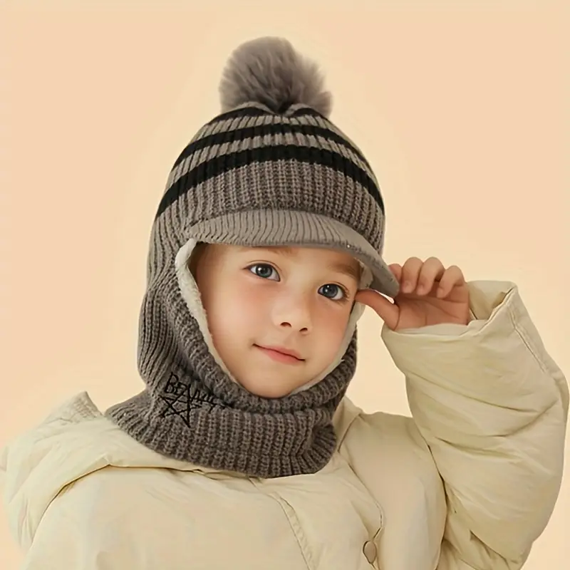 Bonnet d’hiver enfant avec tour de cou tricoté chaud et doux – 1 pièce