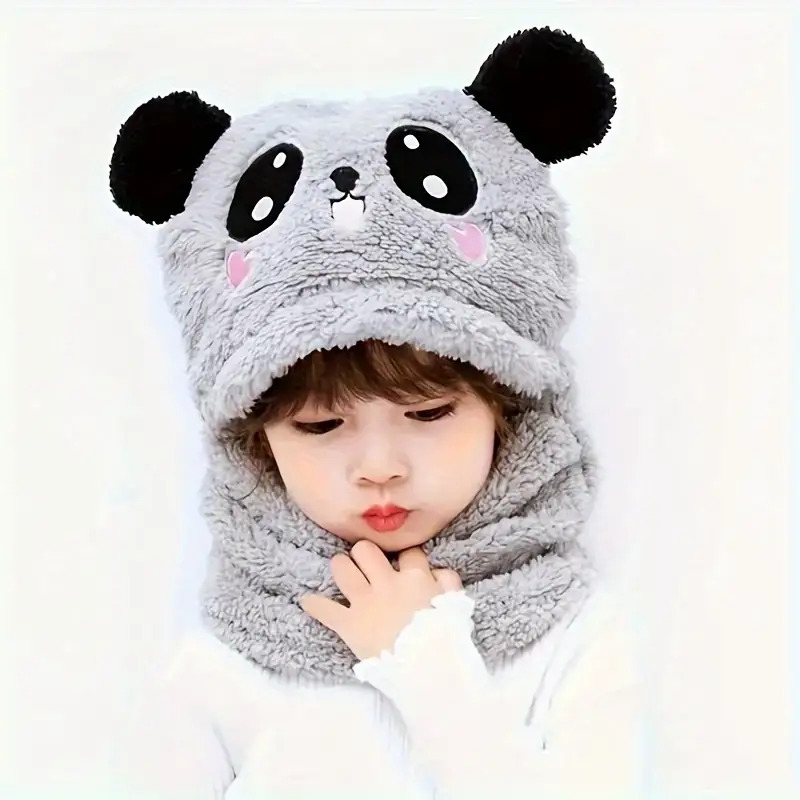 Bonnet fille avec capuche à oreilles et doublure peluche – écharpe intégrée chaude