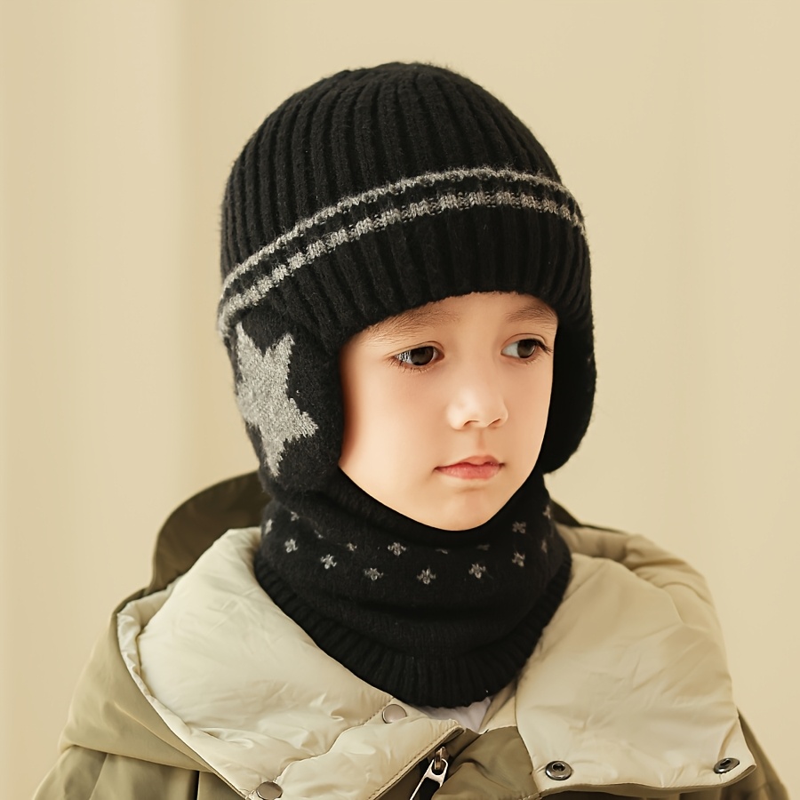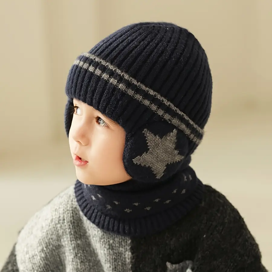 • L’ensemble offre une protection thermique complète avec bonnet, écharpe et cache-oreilles, idéal pour la neige ou les matins froids d’école.